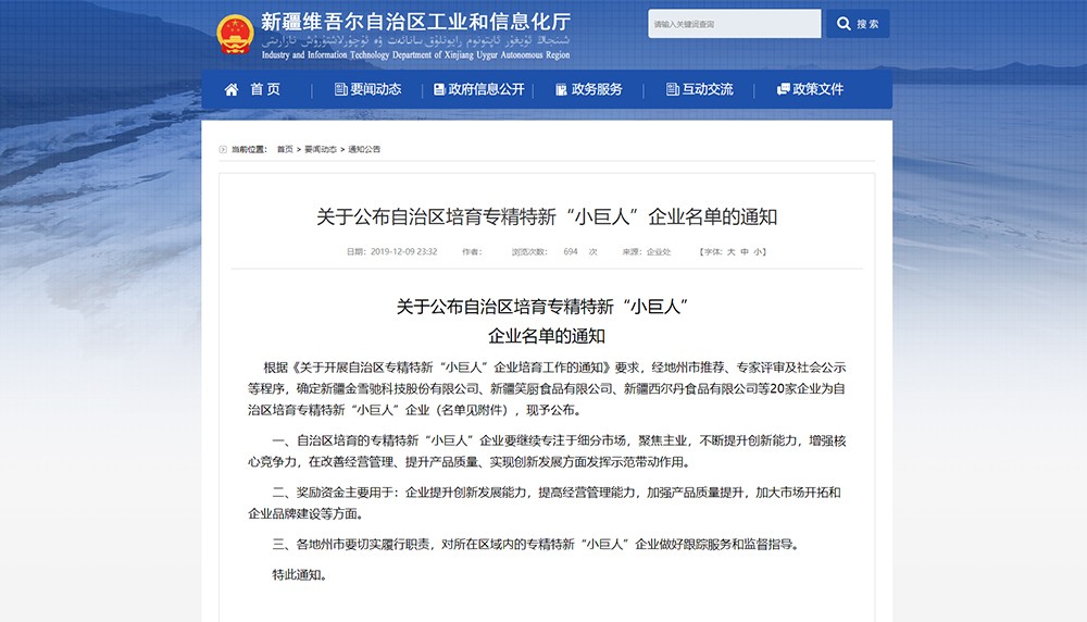 自治區(qū)專(zhuān)精特新中小企業(yè)