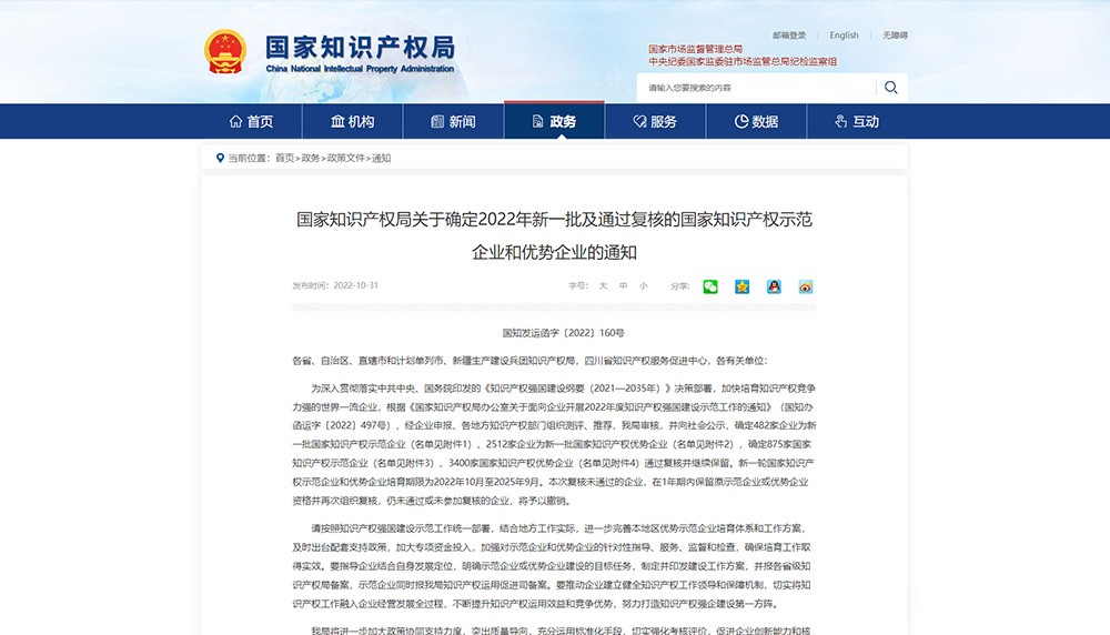 國(guó)家級(jí)知識(shí)產(chǎn)權(quán)優(yōu)勢(shì)企業(yè)