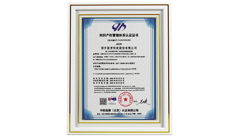 恒升醫(yī)學(xué)獲得知識(shí)產(chǎn)權(quán)管理體系認(rèn)證